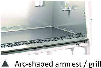 - Pioneered single-piece stainless steel design of work tray with front grille. The front grille Arc increases the fluency of the inflow air. It can be used as an armrest and eliminates the need for additional armrest fittings.